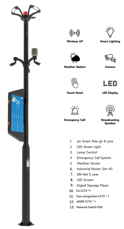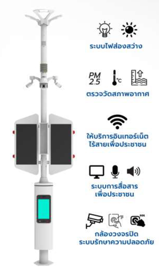ระบบเสาไฟอัจฉริยะที่มีความแม่นยำสูง รองรับเทคโนโลยีต่างๆ เช่น 5G, IoT Sensor, AQI : Pm 2.5, PM10, CO2,